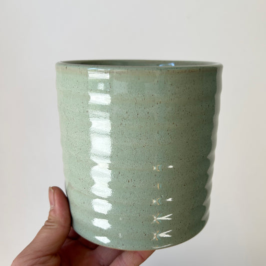ROUX Decorative Ceramic Pot (Pastel Green w. Speckled glaze) 4”x4”