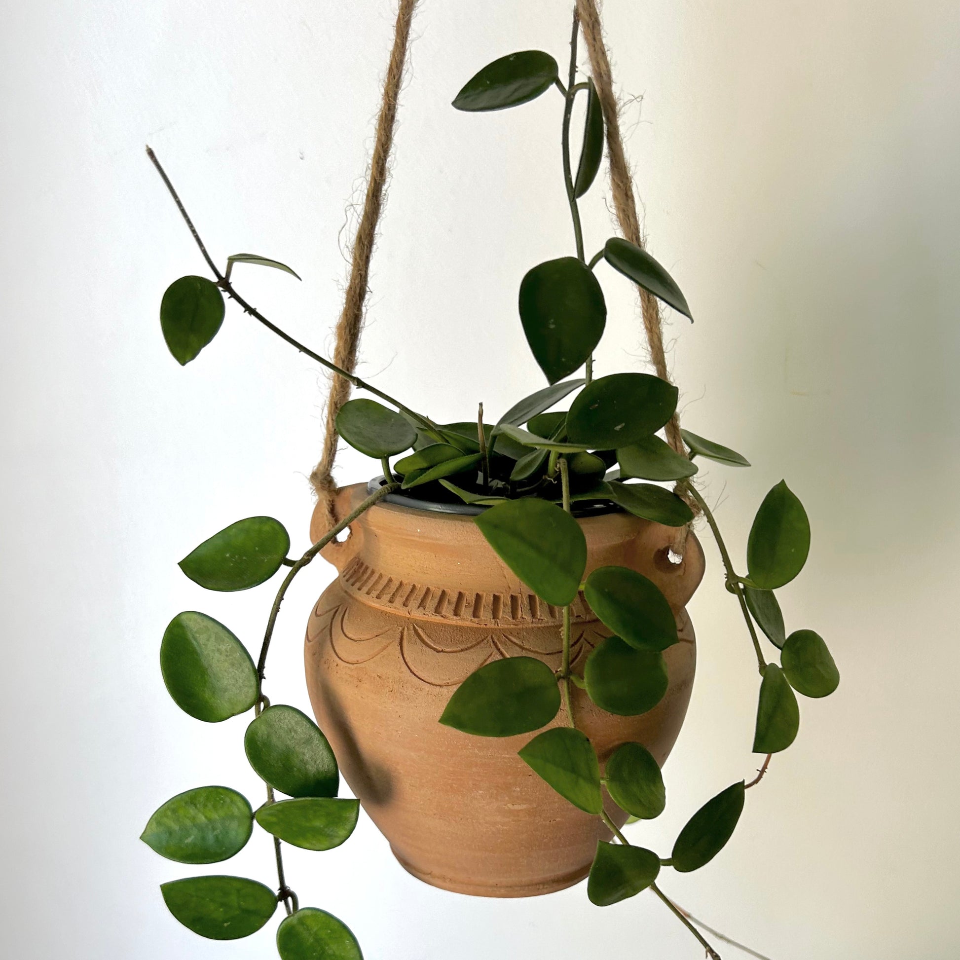 Planter comes with jute for the option to attach to the pot’s handles to suspend.