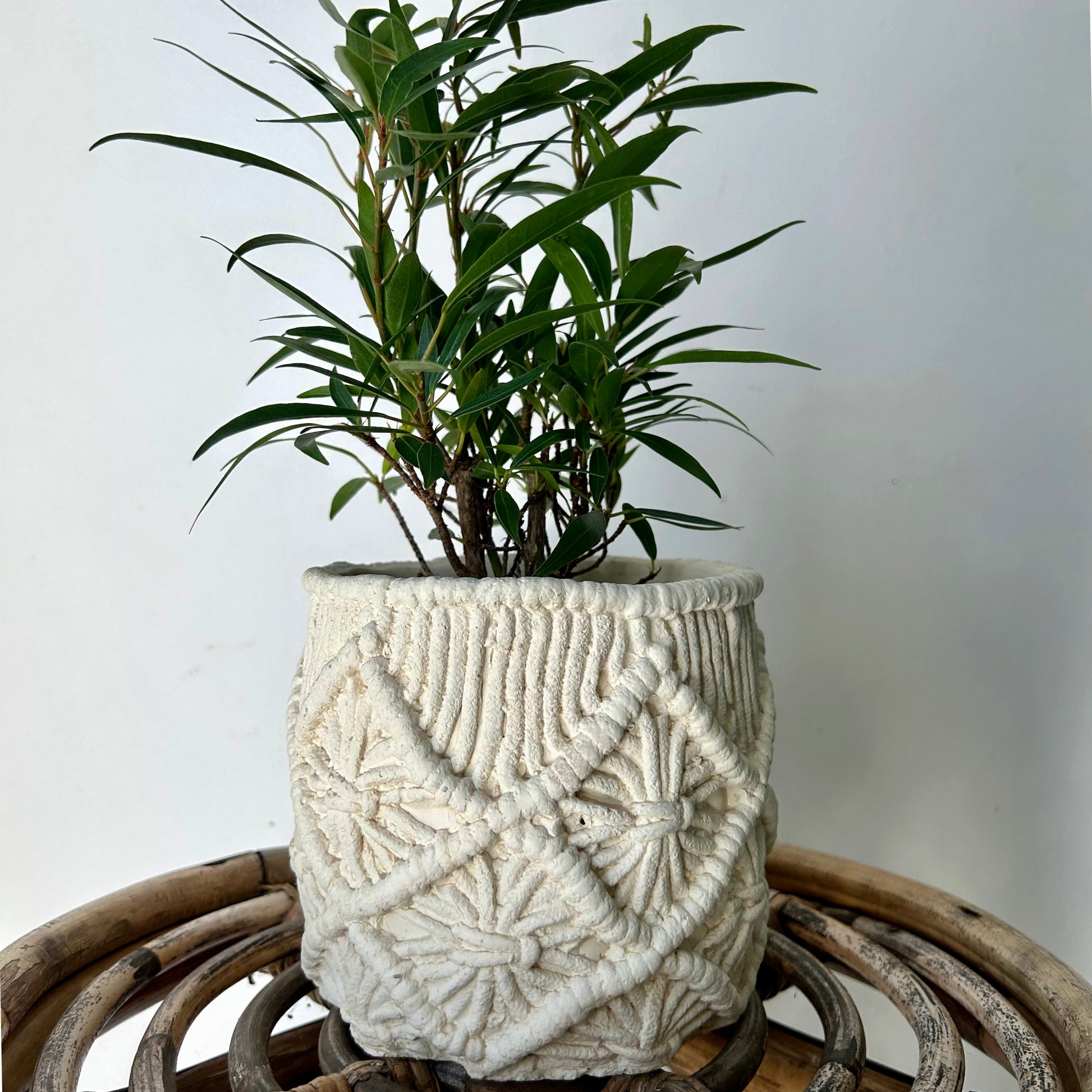 ROWYN Decorative cement pot (macrame-textured design) 4.75”x4.75”