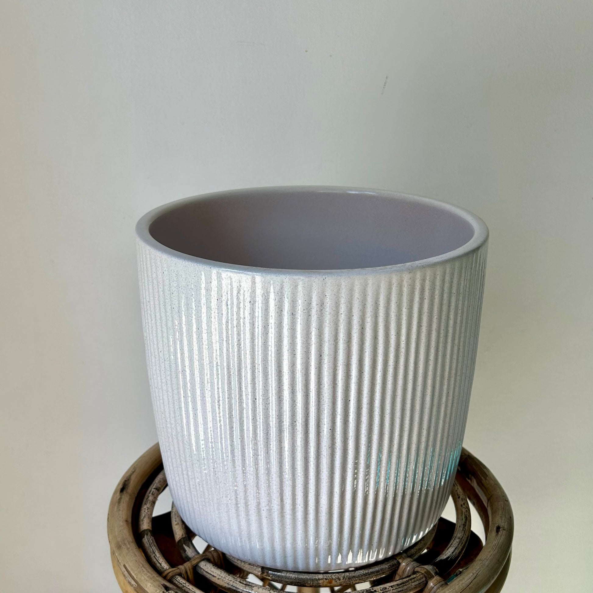Decorative Striped Cylinder planter (9.5”X10”) GLOSSY PEARL