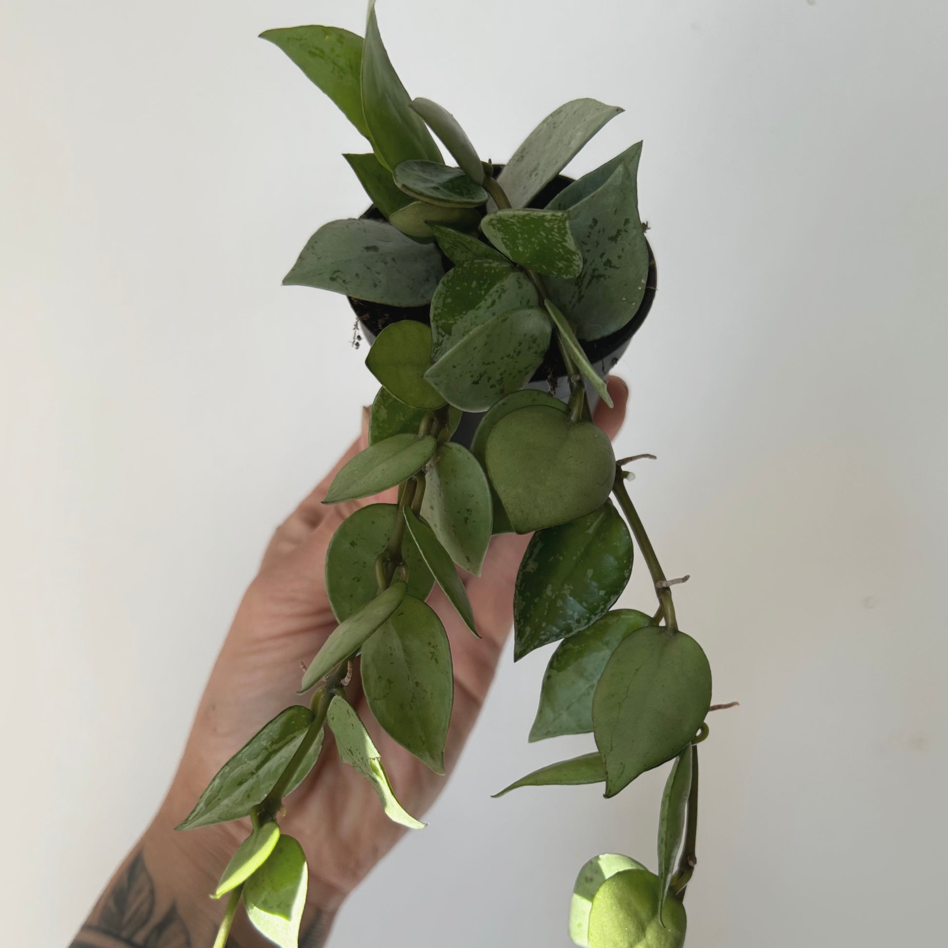This stunner features small, heart-shaped leaves that are completely coated in a silvery sheen, giving them a metallic, almost otherworldly appearance.