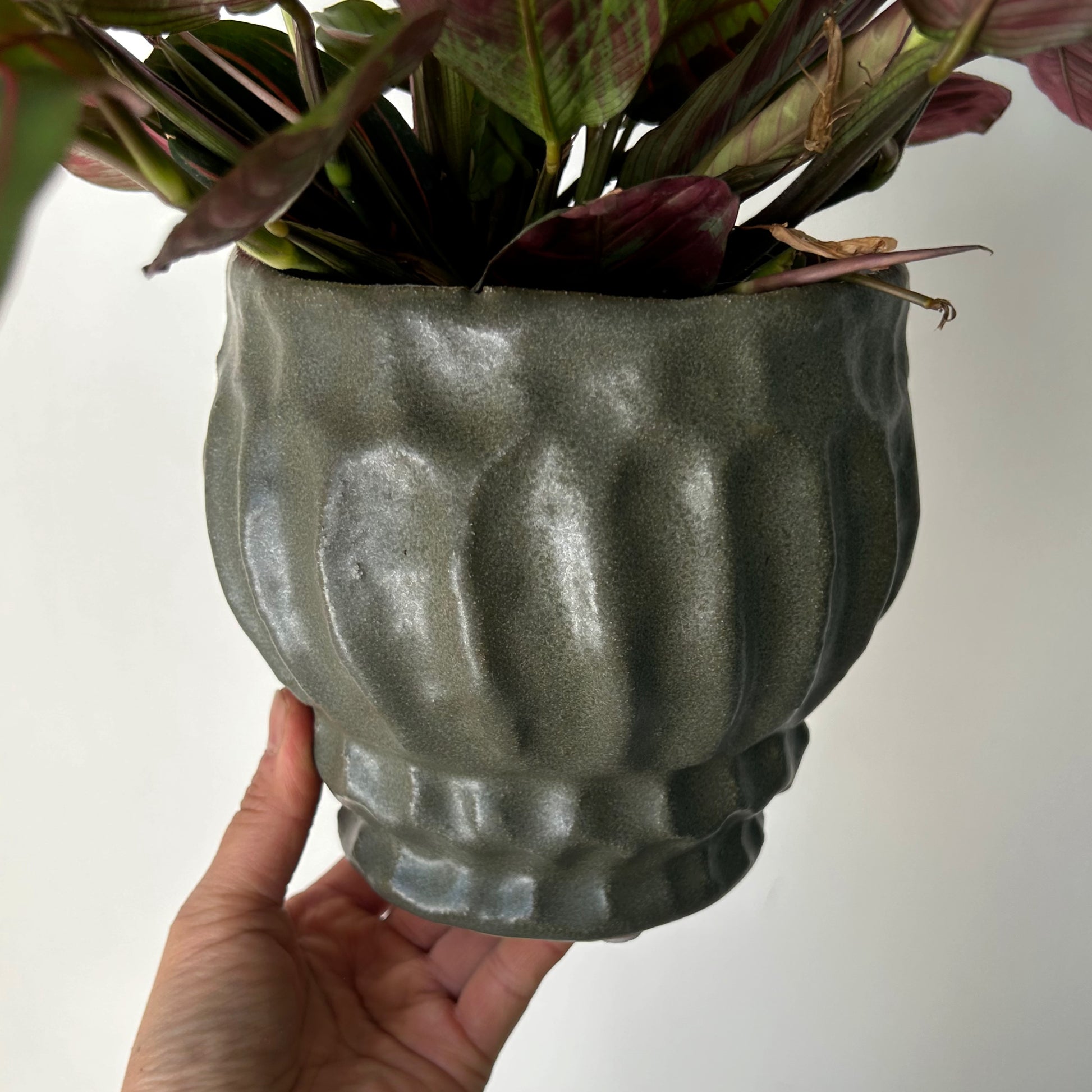 IRIS Raised Decorative Pot (available in two sizes) Dark Green
