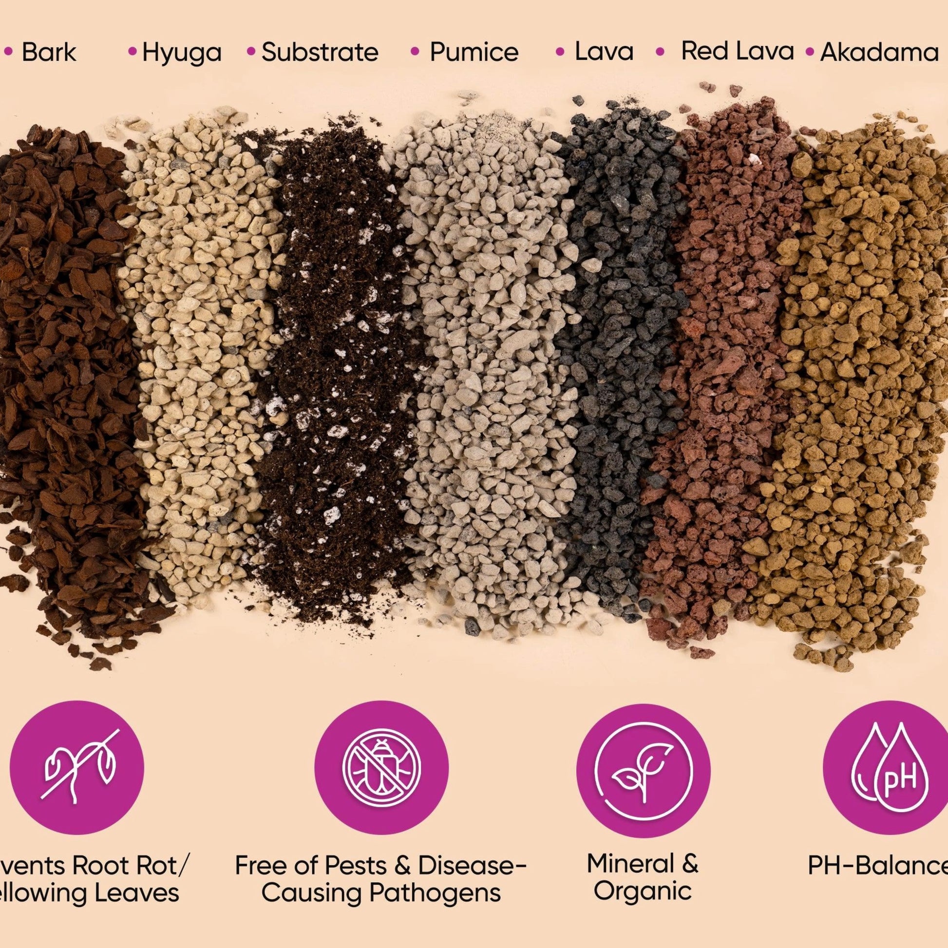 - Premium, Natural Ingredients for Orchid Health: The mix includes orchid bark, pumice stone, lava rock, Akadama, Hyuga, an assortment of nutrients, and an organic fibrous substrate that carries mycorrhizae and Bacillus pumilus.