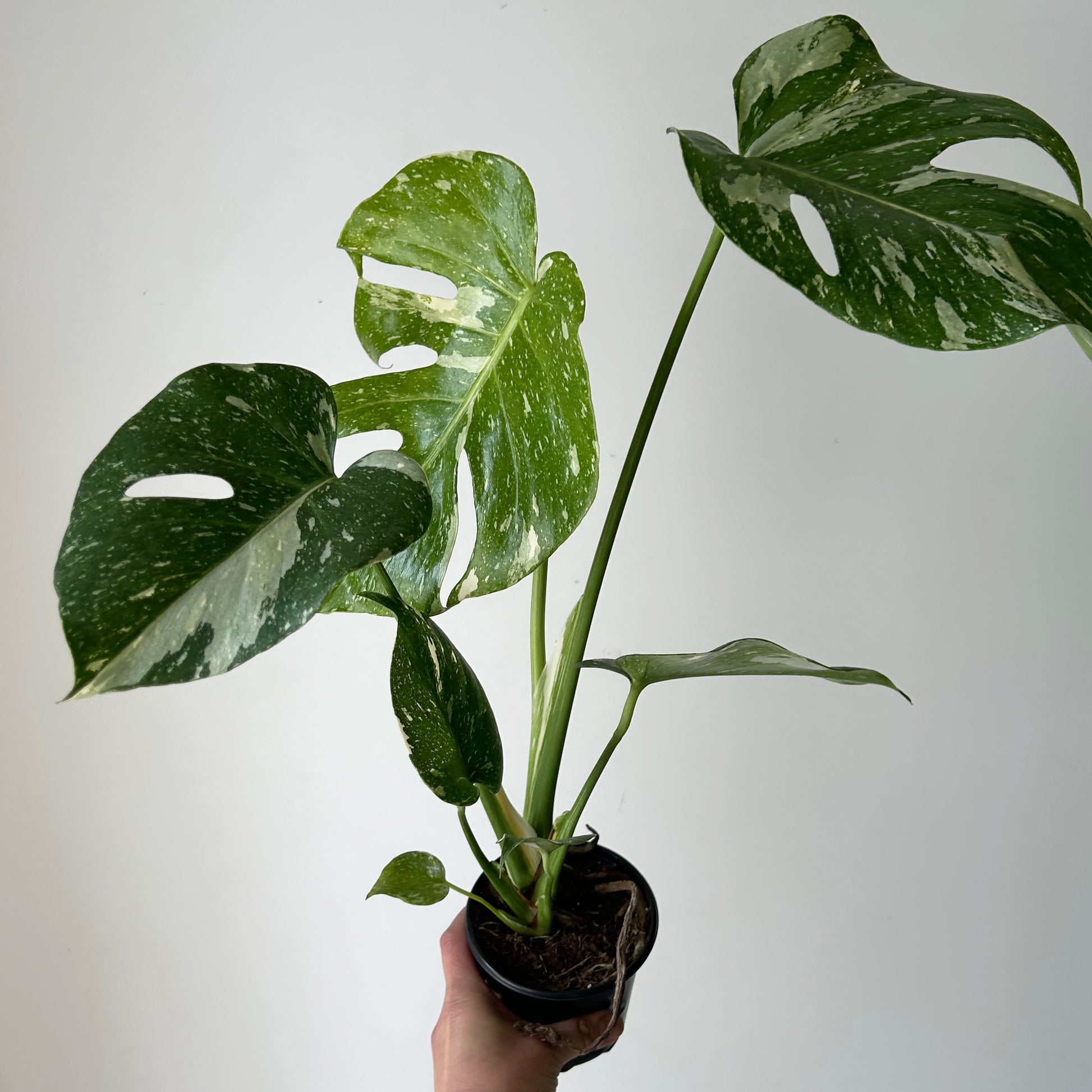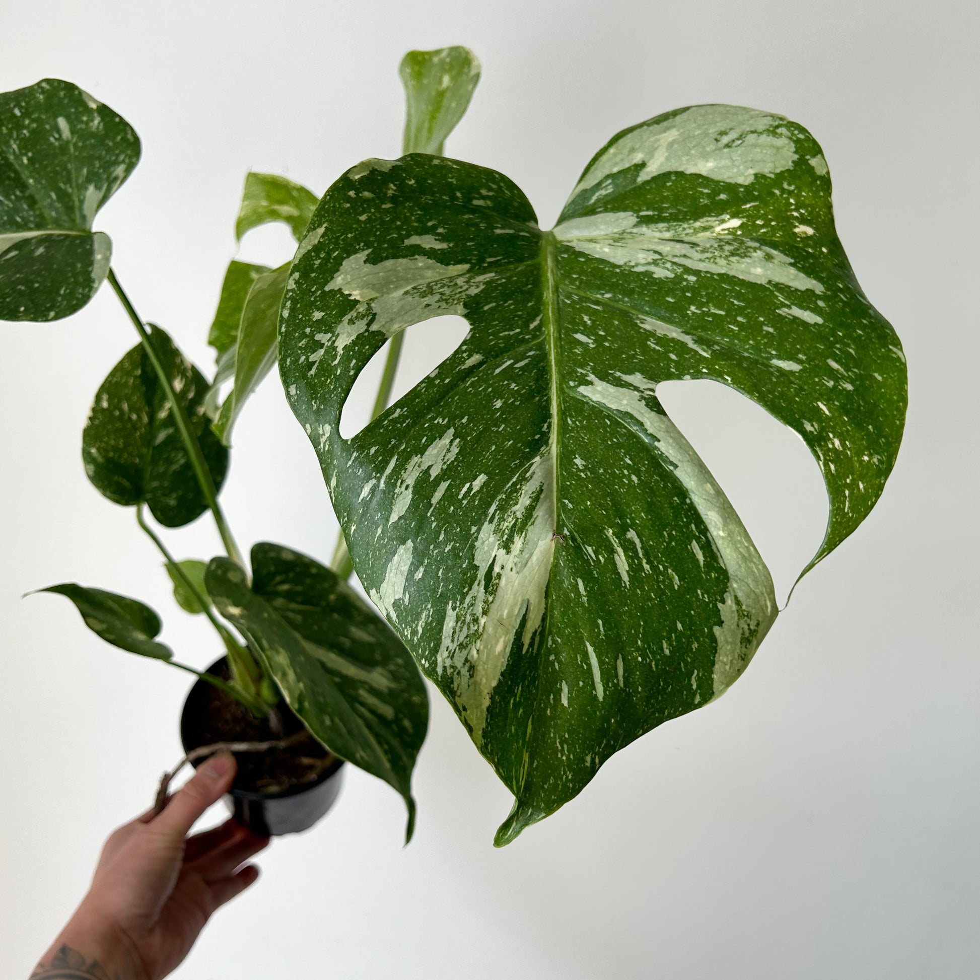 Monstera Thai Constellation features speckles of cream to light yellow patterns- each leaf a celestial canvas, resembling constellations in the night sky, hence its name.