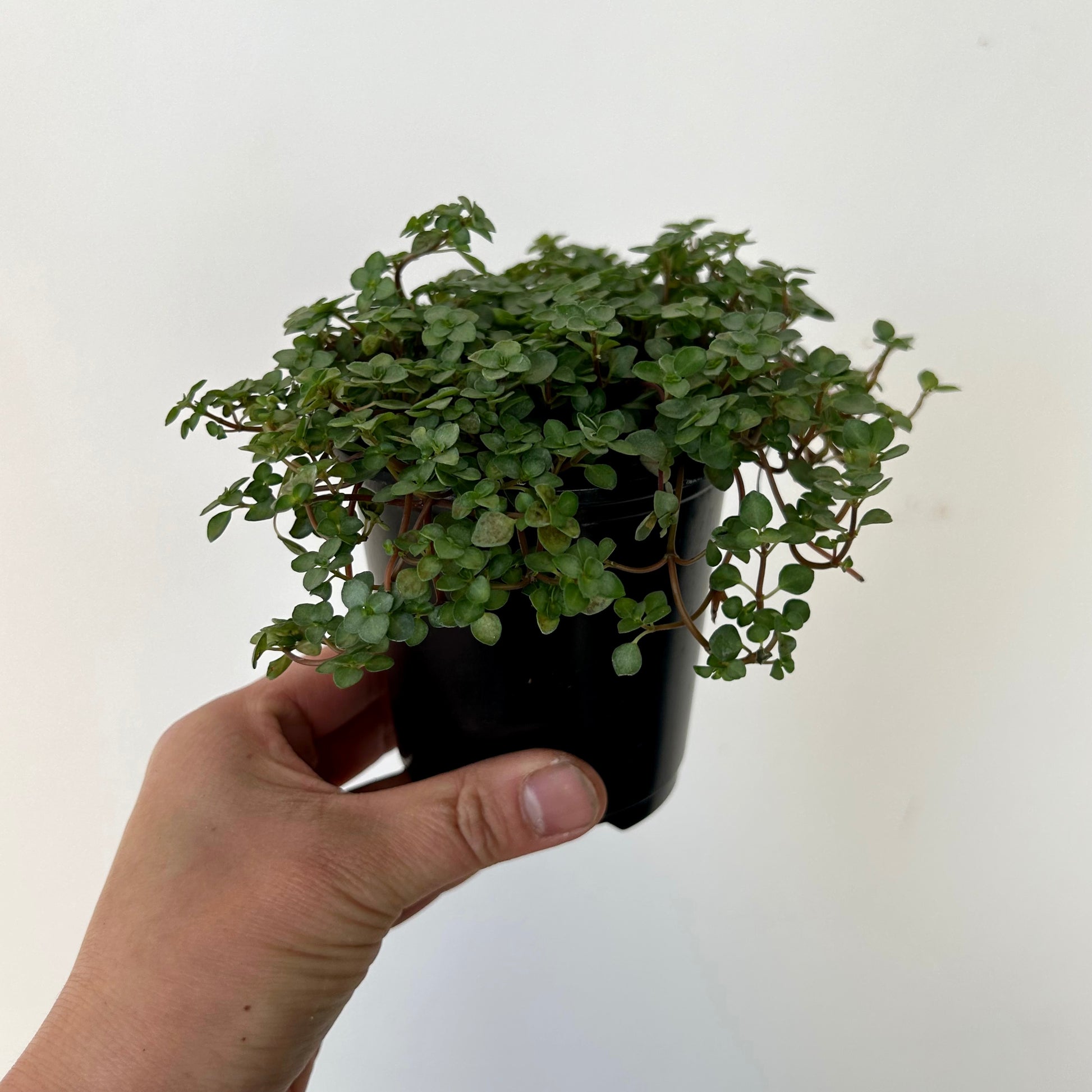 This quick-growing pilea displays round itty bitty leaves and thin red stems. What a lovely combination!