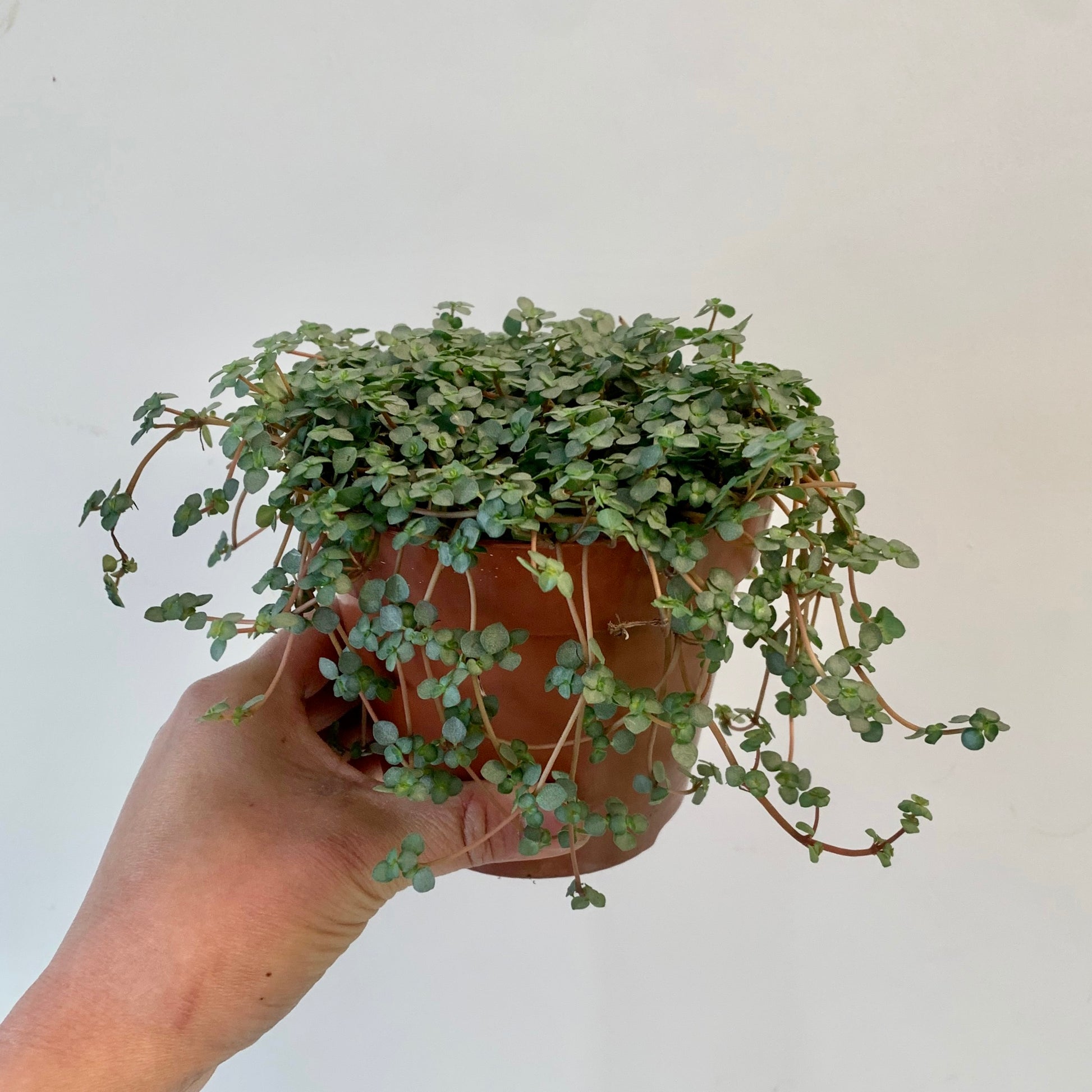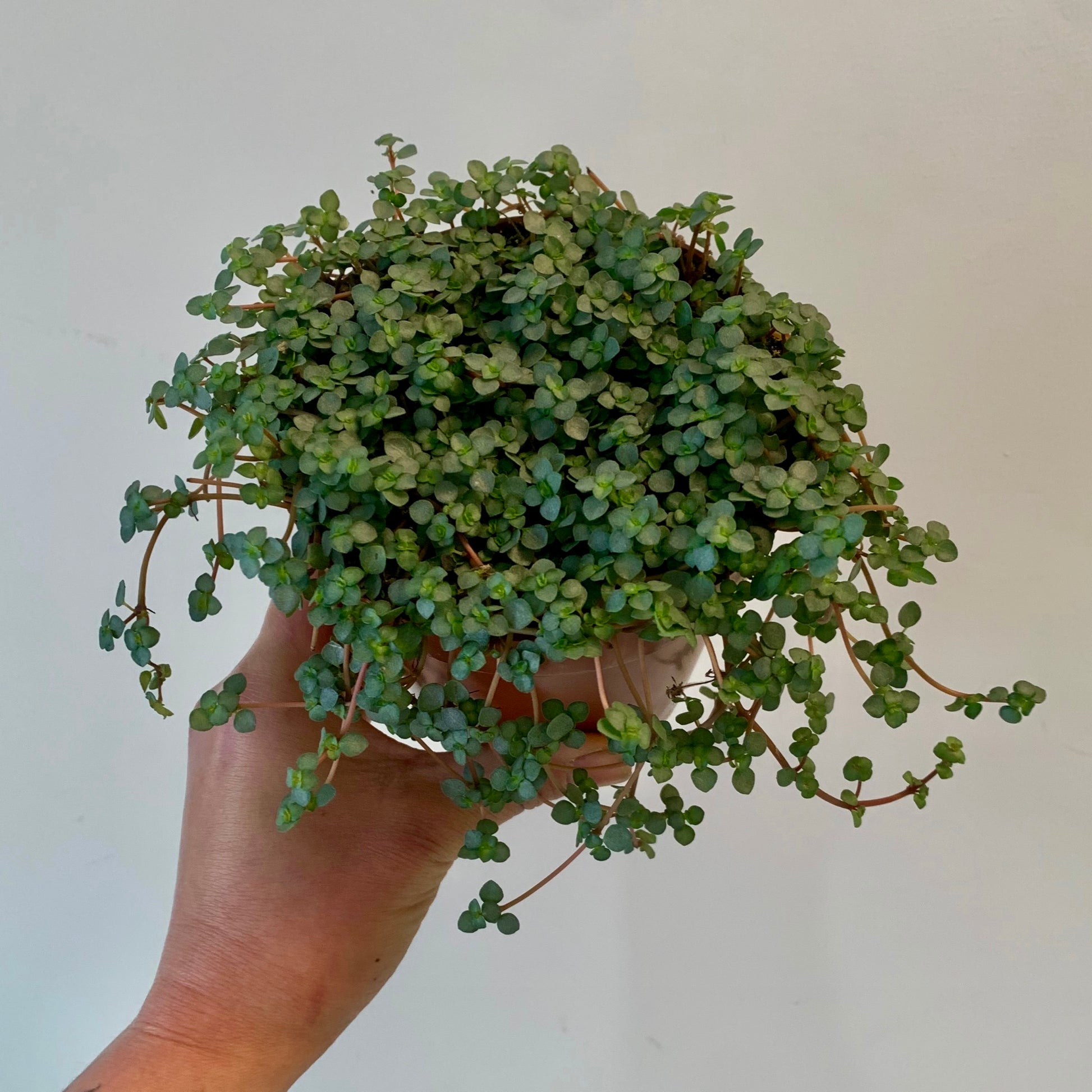 This quick-growing pilea displays round itty bitty leaves and thin red stems. What a lovely combination!