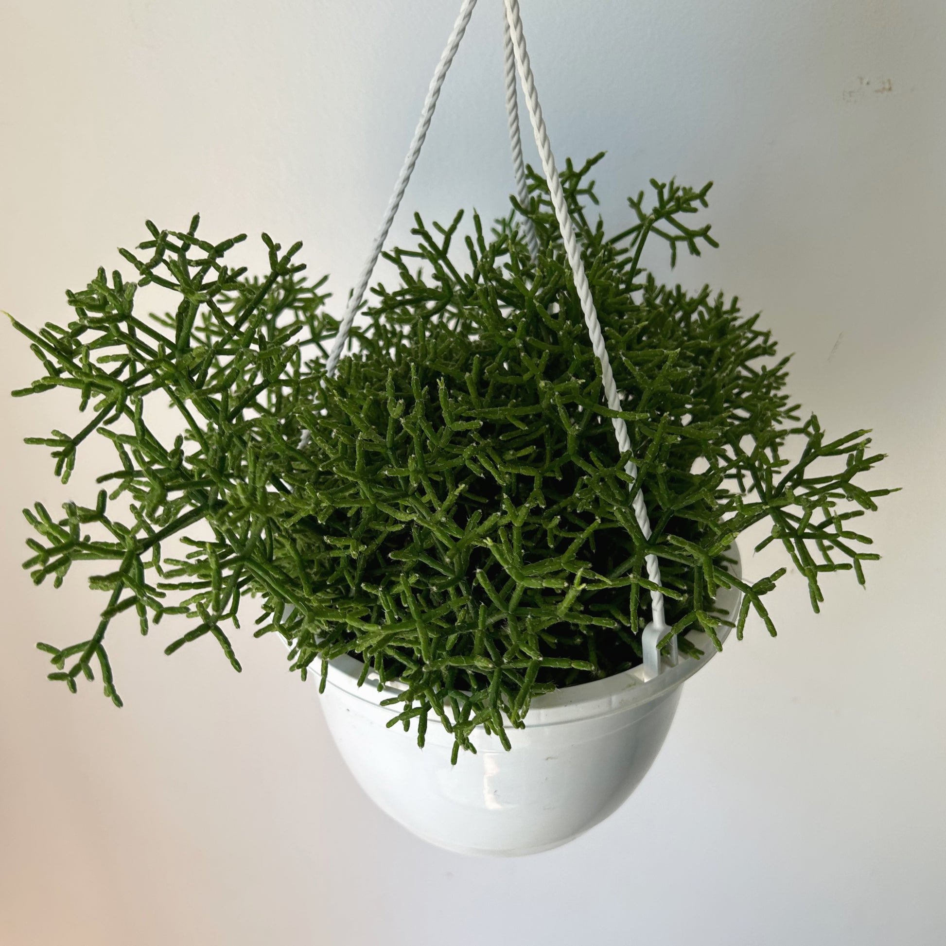 The Rhipsalis cereuscula is characterized by its distinctive, segmented stems that are shaped similarly to clusters of tiny rice grains. The stems grow in a dense, trailing or cascading habit that creates an airy, graceful touch to indoor spaces.