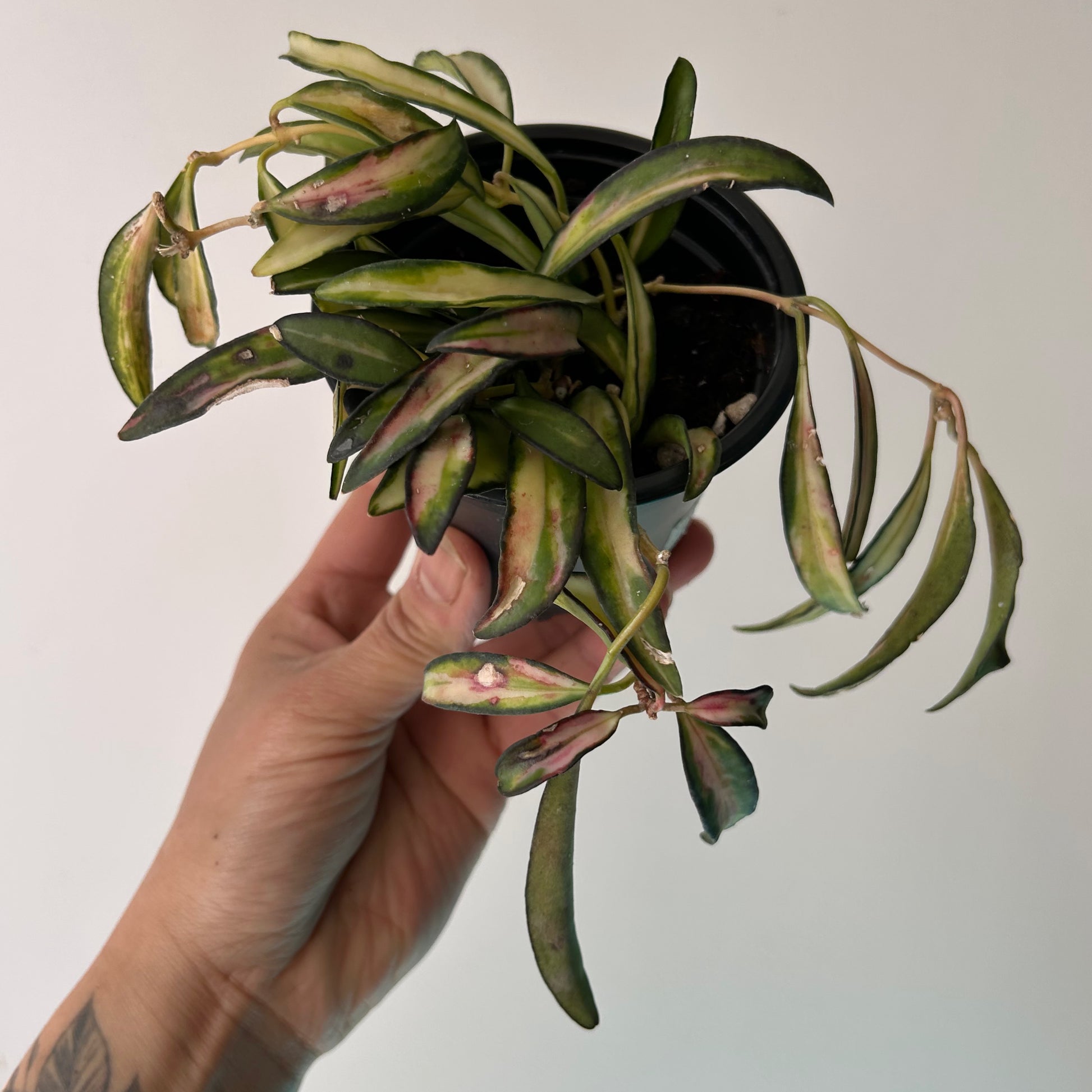 Hoyas tend to be slow growers (compared to leafier varieties), but be patient; these plants can grace us with their beauty for several decades! Commonly referred to as "wax plants" due to their waxy blooms. Hoyas are "epiphytic" specimens, meaning they grow upon the surface of other plants such as trees. If provided with sufficient conditions, hoyas produce fragrant, long-lasting blooms. Although they look lovely when we allow their foliage to cascade freely, be mindful that they are natural climbers and can appreciate a trellis or vined against something to guide vertical growth.